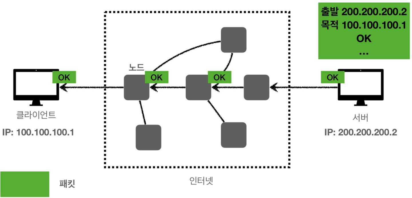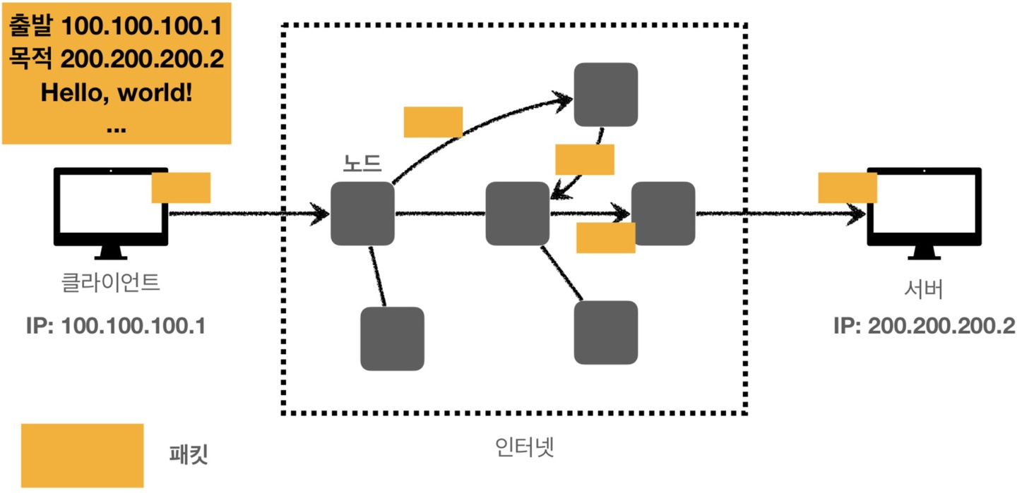 - 패킷(Packet)이라는 통신 단위로 데이터 전달