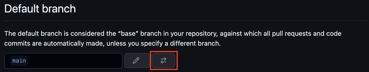 - 해당 GitHub Repository → 상단의 Settings 클릭 → Branchs → switch to another branch 클릭 → 원하는 branch 선택