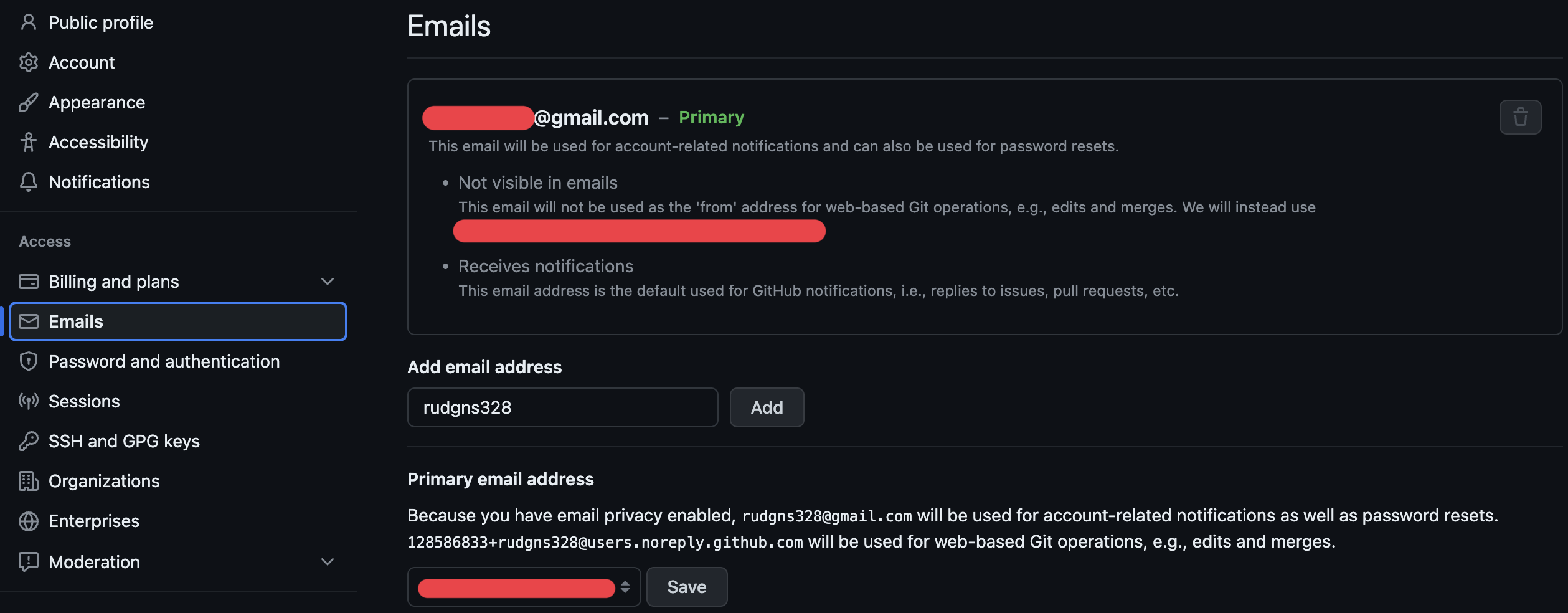 2. GitHub 계정에 등록된 이메일과 local 환경의 이메일 설정이 다른 경우