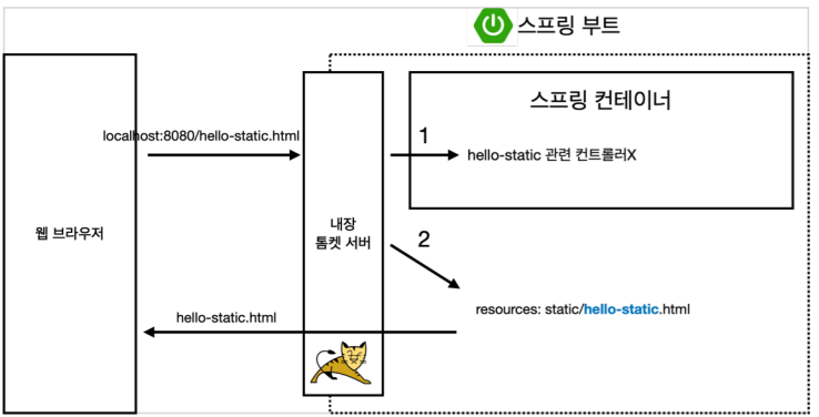- 동작 순서가 컨테이너 안에 ①관련 컨트롤러가 없으면 ②static(정적) 파일을 찾게끔 되어있다.