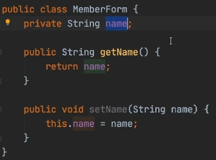 private String name; //이 name과 createMemberForm.html의 name이 매칭이 된다