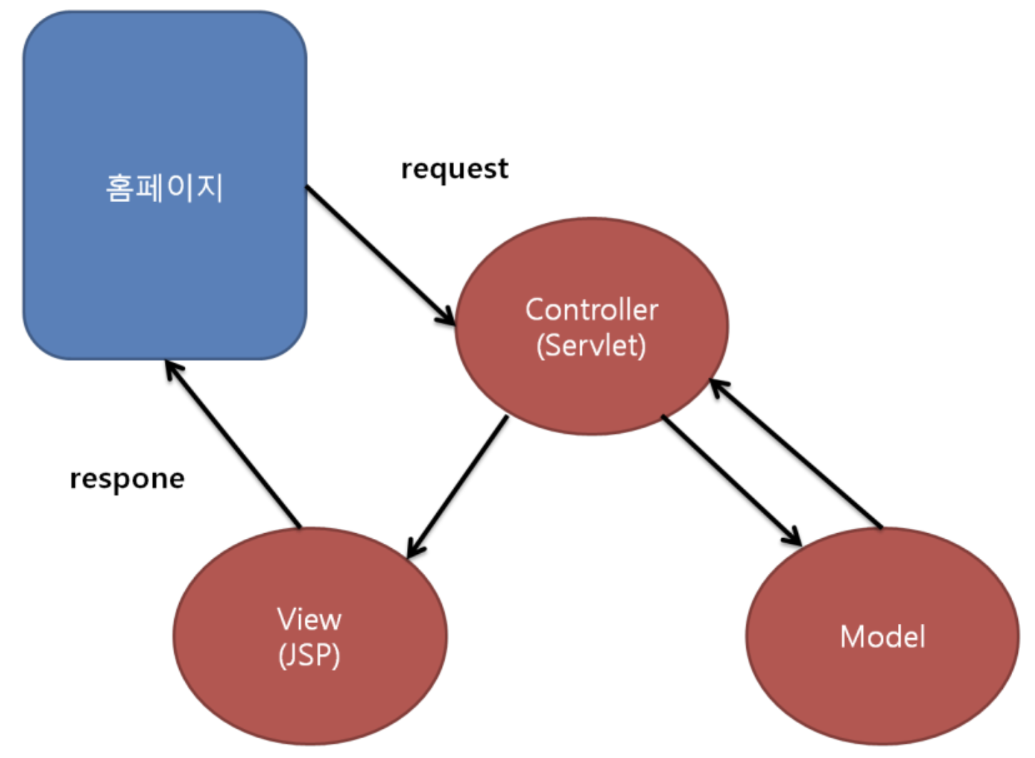 - MVC 모델은 View는 JSP, Controller는 Servlet으로 사용한다.